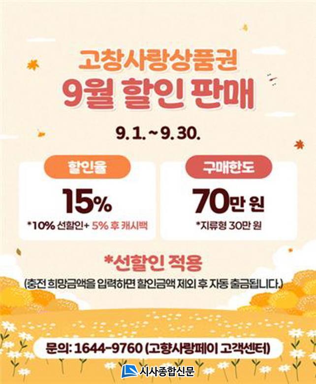°íâ»ç¶û»óǰ±ÇÀº Áö·ù»óǰ±Ç, °íâ»ç¶ûÄ«µå, ¸ð¹ÙÀÏ(°íÇâ»ç¶ûÆäÀÌ) ÇüÅ·ΠÆÇ¸ÅµÇ¸ç, 1ÀÎ´ç ¿ù ±¸¸ÅÇѵµ´Â ÃÑ 70¸¸¿øÀÌ´Ù. È®´ëµÈ 15% ÇÒÀÎÀ²Àº 9¿ùºÎÅÍ Àû¿ëµÇ¸ç, ±¸¸Å½Ã 10% ¼±ÇÒÀο¡ °íâ»ç¶ûÄ«µå °áÁ¦½Ã 5% ÈÄij½Ã¹éÀÌ Ãß°¡·Î Áö±ÞµÈ´Ù.