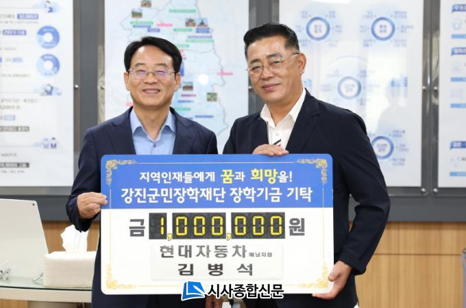 Çö´ëÀÚµ¿Â÷ ÇØ³²ÁöÁ¡ ±èº´¼®¾¾´Â ¡°Àç´É ÀÖ´Â ÇлýµéÀÌ ¼ºÀåÇØ Áö¿ª°ú ±¹°¡ °æÀï·ÂÀ» ³ôÀÌ´Â ÀÎÀç·Î ¼ºÀåÇÏ±æ ¹Ù¶ó´Â ¸¶À½¿¡¼ ÀåÇбÝÀ» ±âŹÇß´Ù¡°¸ç ¡±°Áø±º¹ÎÀåÇÐÀç´ÜÀÇ ÀÎÀç À°¼º »ç¾÷¿¡ ÇÔ²²ÇÒ ¼ö ÀÖ¾î ±â»Ú°í ÇлýµéÀÌ ²ÞÀÇ ³¯°³¸¦ ÆîÃÄ ¼¼°è·Î µµ¾àÇÏ´Â ÀÎÀç·Î ¼ºÀåÇϱ⸦ ¹Ù¶õ´Ù¡±°í ¼Ò°¨À» ¹àÇû´Ù.