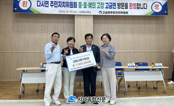 À̳¯ ³ªÁֽà ´Ù½Ã¸é°ú ¿Ïµµ±º °í±Ý¸é ÁÖ¹ÎÀÚÄ¡À§¿øÈ¸ À§¿ø 50¸íÀº ÀÚ¹ßÀûÀ¸·Î °íÇâ»ç¶û±âºÎ±ÝÀ» °¢°¢ 100¸¸ ¿ø¾¿ »óÈ£ ±³Â÷ ±âºÎÇÏ¿´À¸¸ç °¢ ¸é ÇàÁ¤º¹Áö¼¾ÅÍ Á÷¿øµéµµ º°µµ·Î ±³Â÷ ±âºÎÇÏ¿© °íÇâ»ç¶û±âºÎÁ¦ Ȱ¼ºÈ¿¡ µ¿ÂüÇß´Ù.
