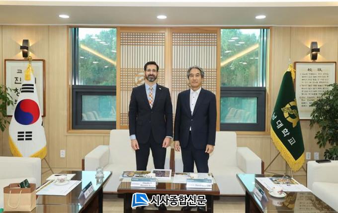 31ÀÏ Àü³²´ë¿¡ µû¸£¸é Áö³ 8¿ù 28ÀÏ(¸ñ) Ŭ¶ó¿ìµð¿À R. ¸ó¼Õ ¹Ù¿¡»ç(Claudio R. Monzon Baeza) ÁÖÇÑ Äí¹Ù ´ë»ç°¡ Àü³²´ëÇб³(ÃÑÀå À̱ٹè)¸¦ ¹æ¹®ÇØ »óÈ£ Çù·Â ¹æ¾ÈÀ» ³íÀÇÇß´Ù.