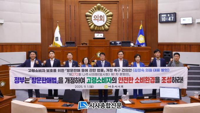 [½Ã»çÁ¾ÇսŹ® = ¿À½ÂÅà ±âÀÚ] ³ªÁÖ½ÃÀÇȸ(ÀÇÀå ÀÌÀç³²)´Â ±èÁ¤¼÷ ÀÇ¿øÀÌ ¹ßÀÇÇÑ ¡®°í·É¼ÒºñÀÚ º¸È£¸¦ À§ÇÑ ¡¸¹æ¹®ÆÇ¸Å µî¿¡ °üÇÑ ¹ý·ü¡¹°³Á¤ Ã˱¸ °ÇÀǾȡ¯À» 1ÀÏ ¿¸° Á¦272ȸ ³ªÁÖ½ÃÀÇȸ(ÀÓ½Ãȸ) Á¦1Â÷ º»È¸ÀÇ¿¡¼ ÀǰáÇß´Ù.