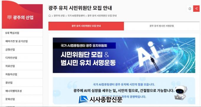 ±¤ÁÖ±¤¿ª½Ã(½ÃÀå °±âÁ¤)´Â ¡®±¹°¡AIÄÄÇ»ÆÃ¼¾ÅÍ ±¤ÁÖ À¯Ä¡ ½Ã¹ÎÀ§¿ø´Ü¡¯À» °ø°³ ¸ðÁýÇÑ´Ù. À̹ø ¸ðÁýÀº Áö³ 1ÀÏ Ãâ¹üÇÑ ¡®±¹°¡AIÄÄÇ»ÆÃ¼¾ÅÍ ±¤ÁÖ À¯Ä¡À§¿øÈ¸¡¯¿¡ À̾î Àü±¹ÀûÀ¸·Î À¯Ä¡ ¿±â¸¦ È®»êÇϱâ À§ÇÑ °ÍÀÌ´Ù.