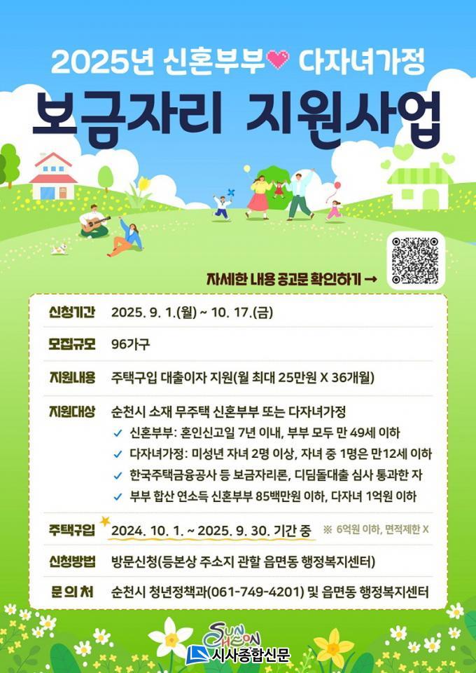 [½Ã»çÁ¾ÇսŹ® = Àå¹Î±Ô ±âÀÚ] ¼øÃµ½Ã(½ÃÀå ³ë°ü±Ô)´Â û³âÀÌ ¾È½ÉÇÏ°í °áÈ¥°ú Ãâ»êÀ» ¼±ÅÃÇÒ ¼ö Àִ ȯ°æÀ» Á¶¼ºÇϱâ À§ÇÑ ¡®2025³â ½ÅÈ¥ºÎºÎ¡¤´ÙÀڳడÁ¤ º¸±ÝÀÚ¸® Áö¿ø»ç¾÷¡¯ ´ë»óÀÚ¸¦ ¿À´Â 10¿ù 17ÀϱîÁö ¸ðÁýÇÑ´Ù°í ¹àÇû´Ù.