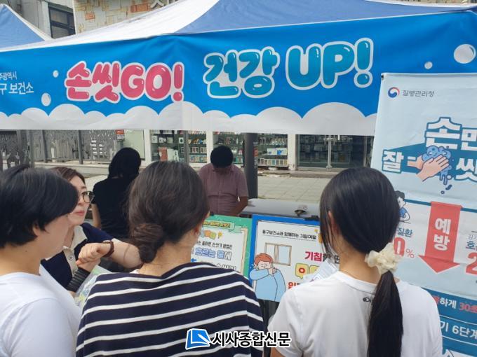 µ¿±¸º¸°Ç¼Ò´Â Â÷ ¾ø´Â °Å¸®¿¡ ³ª°¡ °¨¿°º´ ¿¹¹æ¿¡¼ ±âº»ÀÌÀÚ °¡Àå Áß¿äÇÑ ¼Õ ¾Ä±â 6´Ü°è ¹æ¹ý°ú ±âħ ¿¹ÀýÀ» Àû±Ø ¾Ë·È´Ù. Á÷¿øµéÀº Á÷Á¢ ¿Ã¹Ù¸¥ ¼Õ ¾Ä±â ¹æ¹ýÀ» ½Ã¹ü º¸À̸ç Áֹε鿡°Ô »ýȰ ¼Ó ÀÛÀº ½À°üÀÌ °¨¿°º´ ¿¹¹æ¿¡ Å« È¿°ú°¡ ÀÖÀ½À» °Á¶ÇßÀ¸¸ç, ±âħÇÒ ¶§ ¿Ê¼Ò¸Å·Î °¡¸®´Â ±âħ ¿¹ÀýÀ» ¾È³»ÇØ ¿Ã¹Ù¸¥ °³ÀÎÀ§»ý ¼öÄ¢µµ ÇÔ²² ¾Ë·È´Ù.