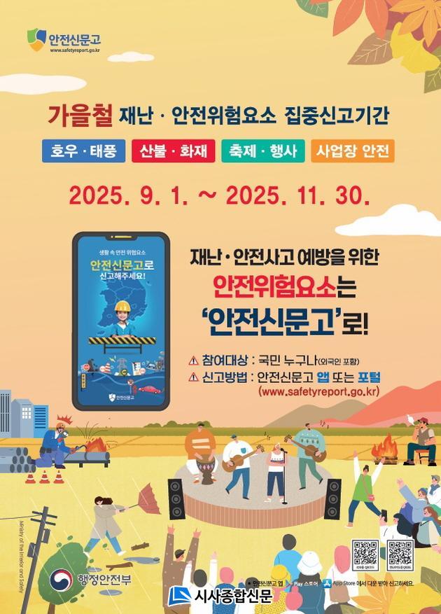 À̹ø ÁýÁß ½Å°í´Â °¡À»Ã¶¿¡ ºó¹øÇÏ°Ô ¹ß»ýÇÏ´Â »ç°í¸¦ ¿¹¹æÇϱâ À§ÇØ ÃßÁøµÇ¸ç, ¡ãÃàÁ¦¿Í Çà»ç ¡ãÈ£¿ì¿Í ÅÂdz ¡ã»êºÒ°ú ÈÀç ¡ã»ç¾÷Àå ¾ÈÀü µî ³× °¡Áö À¯ÇüÀÇ À§Çè ¿ä¼Ò¸¦ ´ë»óÀ¸·Î ÇÑ´Ù.