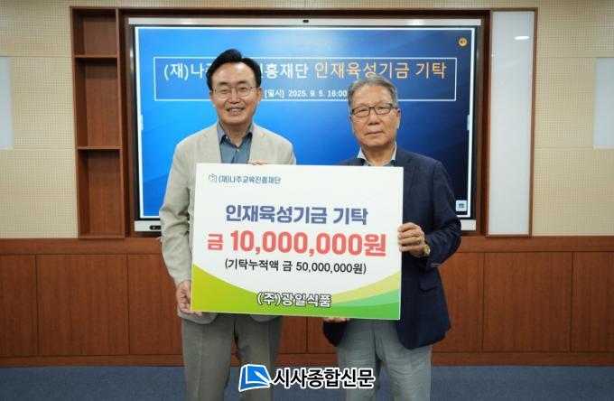 ³ªÁÖ½Ã(½ÃÀå À±º´ÅÂ)´Â ¢ß±¤ÀϽÄǰ(´ëÇ¥ Á¶¹®È£)ÀÌ ÀÎÀçÀ°¼º±â±Ý 1õ¸¸ ¿øÀ» (Àç)³ªÁÖ±³À°ÁøÈïÀç´Ü¿¡ ±âºÎÇϸç 2021³âºÎÅÍ Áö±Ý±îÁö ÃÑ 5õ¸¸ ¿øÀÇ ÀåÇбÝÀ» ±âŹÇß´Ù°í 8ÀÏ ¹àÇû´Ù.
