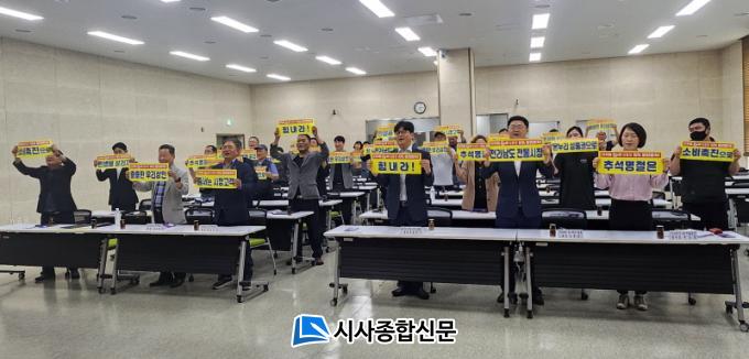 Çà»ç¿¡´Â Àü³²µµ, ±¤ÁÖÀü³²Áö¹æÁß¼Òº¥Ã³±â¾÷ûÀå, ¼Ò»ó°øÀνÃÀåÁøÈï°ø´Ü Àü³²º»ºÎÀå, Àü³²µµ»óÀο¬ÇÕȸÀå, ±¤Áֽà »óÀο¬ÇÕȸÀå, °¢ ½Ã±º »óÀÎȸÀå µî 50¿© ¸íÀÌ Âü¼®Çß´Ù. Àü³²µµ´Â ¼øÃµ¿ôÀå »óÀÎȸÀåÀ» ¼ÒºñÃËÁø´ÜÀåÀ¸·Î, ¸ñÆ÷µ¿ºÎ½ÃÀå°ú ¼øÃµ¾Æ·§Àå »óÀÎȸÀåÀ» ºÎ´ÜÀåÀ¸·Î À§ÃËÇϰí À§ÃËÀåÀ» ¼ö¿©Çß´Ù.