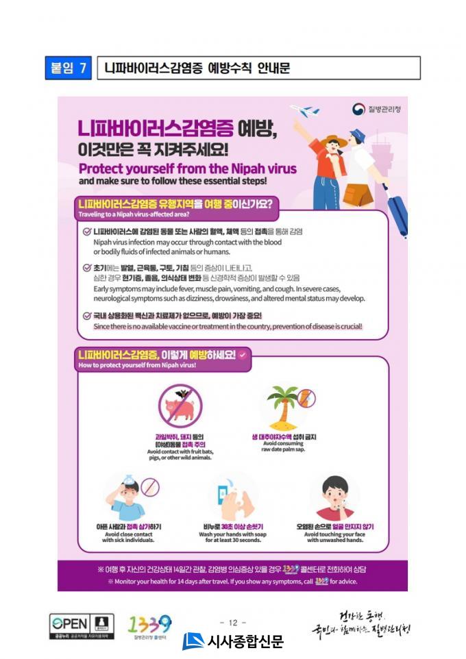 ÇöÀç±îÁö ±¹³»¿¡¼ ´ÏÆÄ¹ÙÀÌ·¯½º°¨¿°ÁõÀÌ ¹ß»ýÇÑ »ç·Ê´Â ¾øÀ¸³ª, °úÀϹÚÁã ¼½Ä ±¸¿ª ³» ¾Æ½Ã¾Æ ±¹°¡µé¿¡¼ »ê¹ßÀûÀ¸·Î ¹ß»ýÇϰí ÀÖÀ¸¸ç, ƯÈ÷ ÃÖ±Ù¿¡µµ Àεµ¿Í ¹æ±Û¶óµ¥½Ã¿¡¼ ȯÀÚ ¹ß»ýÀÌ º¸°íµÊ¿¡ µû¶ó ÇØ´ç ±¹°¡ ¹æ¹® ½Ã °¢º°ÇÑ ÁÖÀǰ¡ ÇÊ¿äÇÏ´Ù.