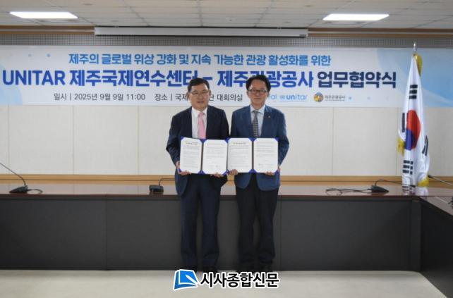 Á¦ÁÖ°ü±¤°ø»ç(»çÀå °í½Âö)´Â Áö³ 9ÀÏ µµ³» ÀÏ¿ø¿¡¼ UNITAR Á¦ÁÖ±¹Á¦¿¬¼ö¼¾ÅÍ(¼ÒÀå ½Å¼ºÃ¶)¿Í Á¦ÁÖÀÇ ±Û·Î¹ú À§»ó °È ¹× Áö¼Ó °¡´ÉÇÑ °ü±¤ Ȱ¼ºÈ¸¦ À§ÇÑ ¾÷¹«Çù¾àÀ» ü°áÇß´Ù°í 10ÀÏ ¹àÇû´Ù.