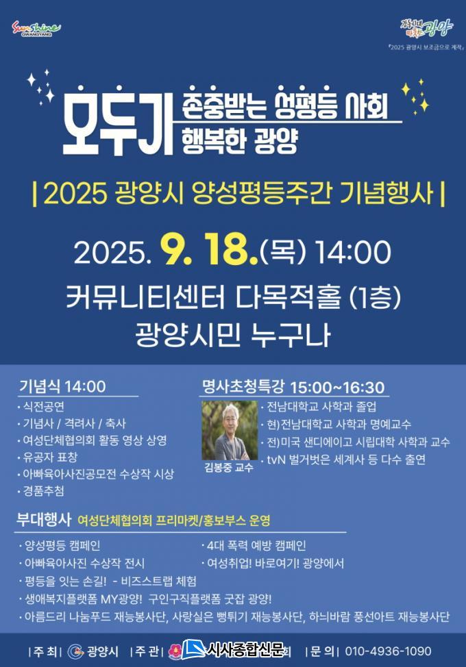 ¶ÇÇÑ Àü³²´ëÇб³ »çÇаú ±èºÀÁß ±³¼ö¸¦ ÃÊÃ»ÇØ ¡®ÀÏ»ó ¼Ó Ç¥Çö°ú º¯ÈÇÏ´Â »çȸ¡¯¸¦ ÁÖÁ¦·Î ¿ª·® °È Ư°À» ÁøÇà, ½Ã¹Îµé¿¡°Ô »õ·Î¿î ½Ã°¢°ú ÅëÂûÀ» Á¦°øÇÒ ¿¹Á¤ÀÌ´Ù. ½Ã´Â À̹ø Çà»ç¿¡¼ ¾ç¼ºÆòµî Ä·ÆäÀΰú 4´ë Æø·Â ¿¹¹æ Ä·ÆäÀÎÀ» Àü°³ÇØ ¼ºÆòµî »çȸ ±¸ÇöÀÇ Çʿ伺À» ¾Ë¸®°í, Æø·Â ¾ø´Â ¾ÈÀüÇÑ ÀÏ»ó Á¶¼º¿¡ ½Ã¹Î Âü¿©¸¦ À̲ø¾î³¾ °èȹÀÌ´Ù.
