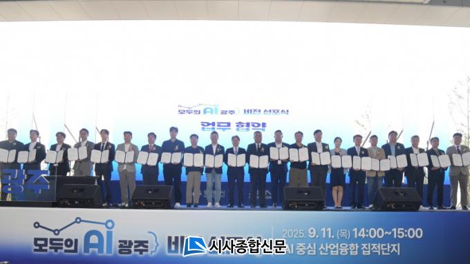 ±¤ÁÖ±¤¿ª½Ã(½ÃÀå °±âÁ¤)´Â 11ÀÏ ºÏ±¸ ÷´Ü3Áö±¸ ÀΰøÁö´É»ê¾÷À¶ÇÕ ÁýÀû´ÜÁö¿¡¼ ¿¸° ¡®¸ðµÎÀÇ AI ±¤ÁÖ ºñÀü ¼±Æ÷½Ä¡¯¿¡¼ ÀΰøÁö´É(AI) ¹× ¹ÝµµÃ¼ ºÐ¾ß ±â°ü‧±â¾÷ 21°÷°ú ¡®±¤ÁÖÇü ÀΰøÁö´É ºñÁî´Ï½º ¾÷¹«Çù¾à¡¯À» ü°áÇß´Ù.