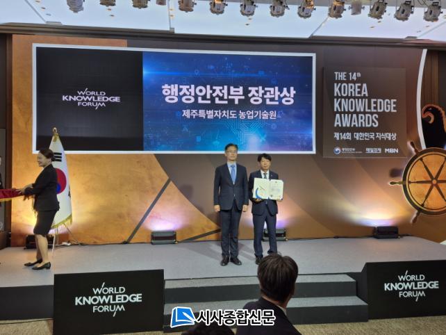 Á¦ÁÖµµ´Â ¡®ÇöÀå µ¥ÀÌÅÍ ±â¹Ý ¹®Á¦ ÇØ°áÇü ³ó¾÷ µðÁöÅÐ ´ëÀüȯ(DX) Ç÷§Æû Á¦ÁÖDA(Jeju Digital Agriculture) ±¸Ã࡯ »ç¾÷ÀÇ Çõ½Å¼ºÀ» ÀÎÁ¤¹Þ¾Æ Çà¾ÈºÎ ÁÖÃÖ ¡®Á¦14ȸ ´ëÇѹα¹ Áö½Ä´ë»ó¡¯¿¡¼ ¿ì¼ö»óÀ» ¹Þ¾Ò´Ù.