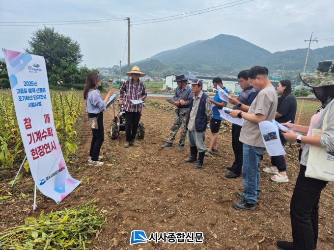 ¿¬½Ãȸ¿¡´Â Áö¿ª ³ó¾÷Àΰú °ü°èÀÚµéÀÌ Âü¼®ÇØ ½ÅǰÁ¾ Âü±úÀÇ »ýÀ° »óȲ°ú ±â°è¼öÈ® °úÁ¤À» Á÷Á¢ È®ÀÎÇß´Ù. ÇöÀå¿¡¼´Â °á¼ÓÇü ¿¹Ãë±â¸¦ Ȱ¿ëÇØ Âü±ú¸¦ Àϰý ¼öÈ®ÇÏ´Â °úÁ¤À» ½Ã¿¬ÇßÀ¸¸ç ±âÁ¸ ¼öÀÛ¾÷ ¹æ½Äº¸´Ù ¼öÈ® È¿À²¼ºÀÌ ³ô°í ǰÁú À¯Áö¿¡µµ È¿°úÀûÀ̶ó´Â Æò°¡¸¦ ¹Þ¾Ò´Ù.