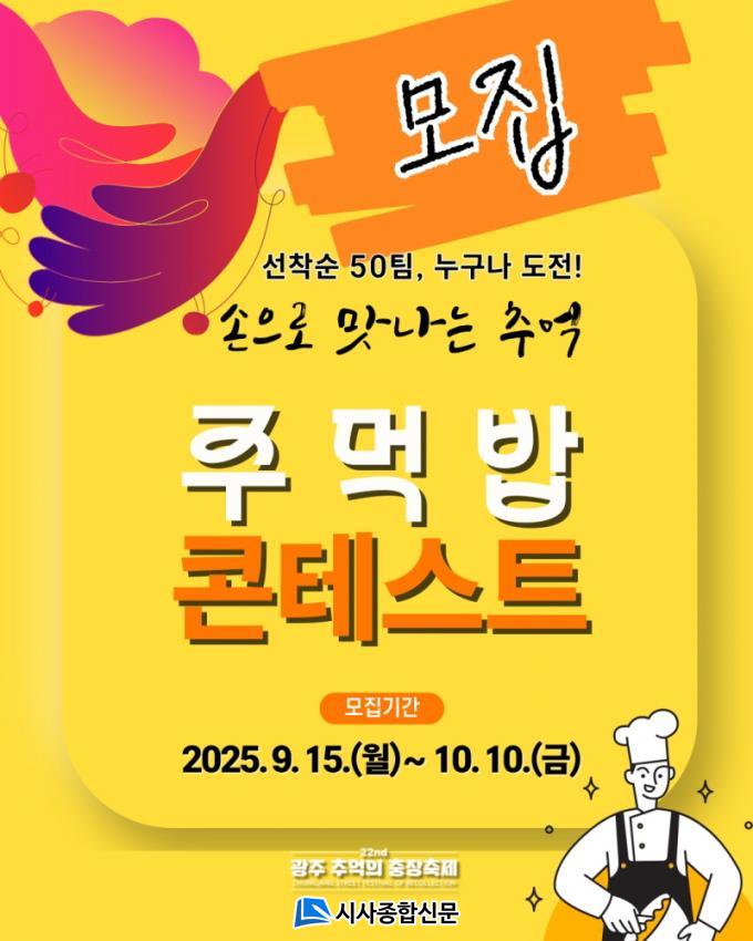 ¡®ÁÖ¸Ô¹ä ÄÜÅ×½ºÆ®¡¯´Â ¿ÃÇØ ÃàÁ¦ ÁÖÁ¦ÀÎ ¡®Ãß¾ïÀÇ µ¿È¡¯¸¦ ³ª´®°ú ¿¬´ëÀÇ »ó¡ÀÎ 5¡¤18 ÁÖ¸Ô¹äÀ̶ó´Â ¸Å°³Ã¼·Î Ç®¾î³»´Â Âü¿©Çü ÇÁ·Î±×·¥ÀÌ´Ù. ÃæÀåÃàÁ¦ °³ÃÖ ±â°£ Áß 4ÀϰÀÎ 10¿ù 18ÀÏ ¿ÀÈÄ 2½ÃºÎÅÍ ±Ý³²·Î ÁÖ ¹«´ë¿¡¼ ÆîÃÄÁø´Ù. ¼Õ¾ÈÀÇ ÀÛÀº ¹ä ÇÑ µ¢ÀÌ¿¡ ´ã±ä °¢ÀÚÀÇ À̾߱â¿Í Ãß¾ï, µ¿ÈÀû »ó»ó·ÂÀÌ ¾î¿ì·¯Á® Àü ¼¼´ë°¡ ÇÔ²² Áñ±â´Â Ưº°ÇÑ ¸Ô°Å¸® ¹®È¸¦ ¸¸µé¾î ÃàÁ¦ÀåÀ» ´õ¿í dz¼ºÇÏ°Ô ÇÒ °ÍÀ¸·Î ±â´ëµÈ´Ù.