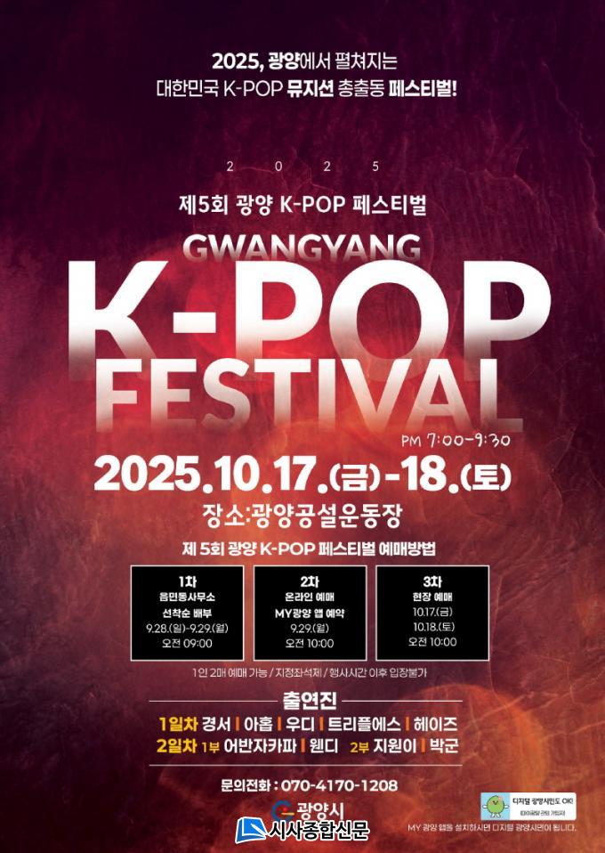 ¿À´Â 10¿ù 17Àϰú 18ÀÏ ÀÌÆ²°£ ±¤¾ç°ø¼³¿îµ¿Àå ÀÏ¿ø¿¡¼ °³ÃÖµÉ Á¦5ȸ ±¤¾ç K-POP Æä½ºÆ¼¹úÀº 1ÀÏ Â÷¿Í 2ÀÏ Â÷·Î ¶óÀξ÷À» ±¸ºÐÇØ ¼¼´ëº°, ÃëÇ⺰ À帣ÀÇ ½ºÆåÆ®·³À» ³ÐÇû´Ù.