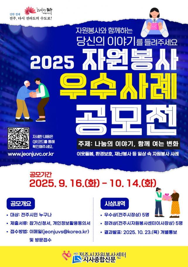 À̹ø °ø¸ðÀü¿¡´Â ÀÚ¿øºÀ»ç Ȱµ¿ °æÇèÀÌ ÀÖ´Â ÀüÁֽùÎÀÌ¸é ´©±¸³ª(°³ÀÎ, û¼Ò³â, ´Üü, µ¿¾Æ¸®, ±â¾÷ µî) Âü¿©ÇÒ ¼ö ÀÖÀ¸¸ç, ½É»ç¸¦ °ÅÃÄ ÃÑ 10¸íÀÇ ¿ì¼ö»ç·Ê¸¦ ¼±Á¤ÇÏ°Ô µÈ´Ù. ¿ì¼ö»ó 5¸í°ú Àå·Á»ó 5¸í¿¡°Ô´Â °¢°¢ ÀüÁÖ½ÃÀå ǥâ°ú ÀüÁÖ½ÃÀÚ¿øºÀ»ç¼¾ÅÍ ÀÌ»çÀå ǥâÀÌ ¼ö¿©µÉ ¿¹Á¤ÀÌ´Ù.