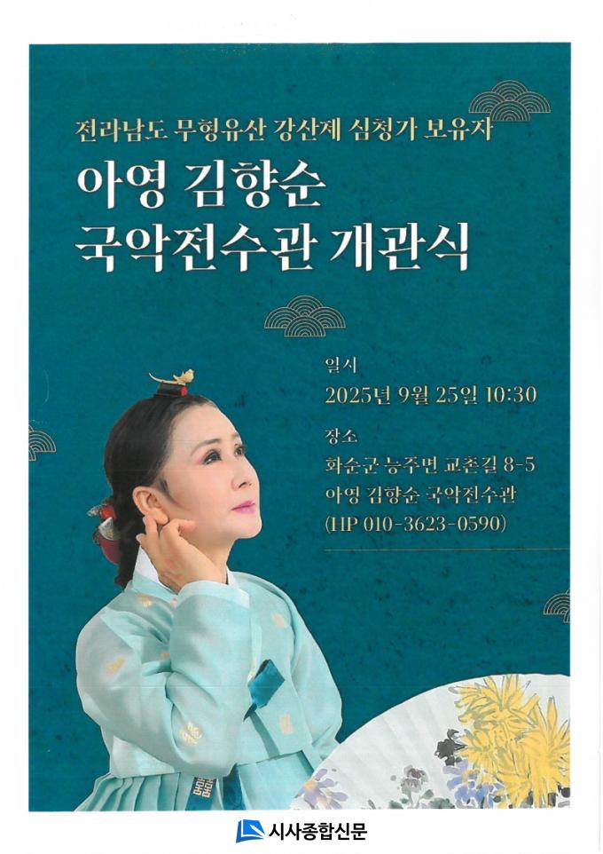 | ȼø±º, Àü¶ó³²µµ ¹«ÇüÀ¯»ê ÆÇ¼Ò¸® º¸À¯ÀÚ ¾Æ¿µ ±èÇâ¼ø ¸íâ ±¹¾ÇÀü¼ö°ü °³°ü½Ä °³ÃÖ 9¿ù 25ÀÏ(¸ñ) ´ÉÁÖ¸é ±¹¾ÇÀü¼ö°ü¿¡¼ °³°ü ÃàÇϰø¿¬ |