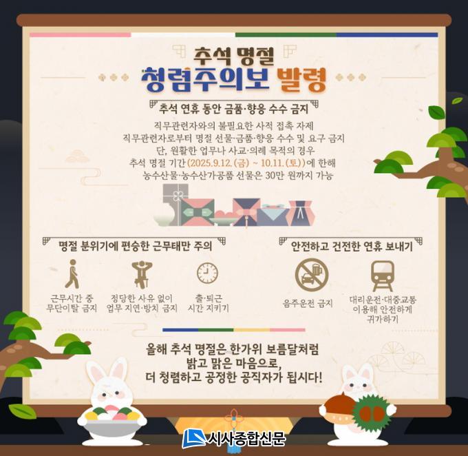 ȼø±ºÀº Ãß¼® ¸íÀý ºÐÀ§±â¿¡ Æí½ÂÇØ ±Ýǰ¡¤¼±¹°¡¤ÇâÀÀ ¼ö¼ö µî Çൿ°·É ¹× ûʱÝÁö¹ý À§¹Ý »ç·Ê ¹ß»ýÀ» ¸·°í, ¸ðµç °øÁ÷ÀÚ¿¡°Ô °æ°¢½ÉÀ» ÁÖ±â À§ÇØ Ã»·ÅÁÖÀǺ¸¸¦ ¹ß·ÉÇß´Ù°í ¹àÇû´Ù.