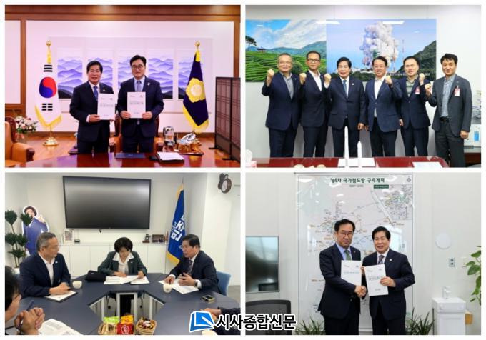 °ø¿µ¹Î ±º¼ö´Â ¿ì¿ø½Ä ±¹È¸ÀÇÀåÀ» ºñ·ÔÇØ ¸Í¼º±Ô ±¹Åä±³ÅëÀ§¿øÀå, ¾î±â±¸ ³óÇØ¼öÀ§¿øÀå, ¹®±ÝÁÖ¡¤¹ÚÈ«±Ù¡¤¾Èµµ°É¡¤À̰³È£¡¤Á¶ÀÎö¡¤ÇÑÁ¤¾Ö ÀÇ¿øÀ» Â÷·Ê·Î ¸¸³ª ¡ã±¹µµ 15È£¼± °íÈï~ºÀ·¡ È®Àå »ç¾÷ Á¶±â ¿Ï°øÀ» À§ÇÑ ¼³°èºñ ¹Ý¿µ ¡ã±¹¸³ ´ÙµµÇØ »ê¸²Ä¡À¯¿ø Á¶¼º ¡ã°íÈï ¿ìÁÖ¼± öµµ °Ç¼³ ¡ã¿ìÁÖ°úÇаü Àü½Ã¹° °³¼± ¡ã½º¸¶Æ® º¹ÇÕ °øµ¿¹°·ù¼¾ÅÍ °Ç¸³ ¡ã¹Î°£ Àü¿ë ¿ìÁֹ߻çü ¿£Áø ¿¬¼Ò ½ÃÇè½Ã¼³ ±¸Ãà ¡ã±Í¾îÇб³ ¼³Ä¡ µî ÃÑ 7°Ç¿¡ ´ëÇØ ±¹ºñ Áö¿øÀÇ Çʿ伺À» ¼³¸íÇÏ°í °ÇÀÇÇß´Ù.