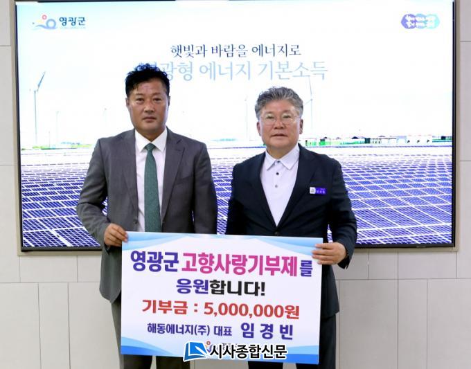 [½Ã»çÁ¾ÇսŹ® = ¿À½ÂÅà ±âÀÚ] ÇØµ¿¿¡³ÊÁöÁÖ½Äȸ»ç ÀÓ°æºó ´ëÇ¥°¡ Áö³ 9¿ù 24ÀÏ ¿µ±¤±º ±º¼ö½ÇÀ» ¹æ¹®ÇØ °íÇâ»ç¶û±âºÎ±Ý 500¸¸ ¿øÀ» ±âŹÇß´Ù.