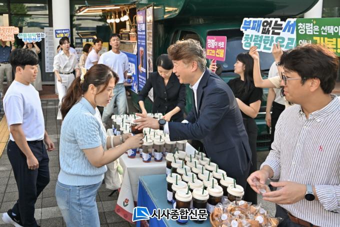 À̳¯ Ä·ÆäÀο¡¼´Â ¼±¸Ã» Á¤¹® ÃâÀÔ±¸¿¡¼ Ãâ±ÙÇÏ´Â Á÷¿øµé¿¡°Ô û·Å ¸í¾ðÀÌ ´ã±ä Æ÷ÃáÄíŰ¿Í Ä¿ÇÇ¡¤¿¡ÀÌµå µî À½·á¸¦ ÇÔ²² Á¦°øÇØ Ã»·Å ¸Þ½ÃÁö¸¦ ÀüÇß´Ù.