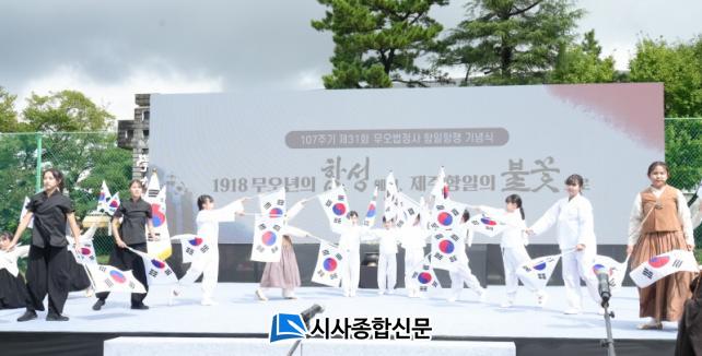 ¡®1918 ¹«¿À³âÀÇ ÇÔ¼º¿¡¼, Á¦ÁÖÇ×ÀÏÀÇ ºÒ²ÉÀ¸·Î¡¯¸¦ ÁÖÁ¦·Î ¿¸° ¿ÃÇØ ±â³ä½Ä¿¡´Â µ¶¸³À¯°øÀÚ À¯Á·°ú ±¤º¹È¸¿ø, û¼Ò³â, ºÒ±³°è, µµ³» ÁÖ¿ä ±â°ü¡¤´Üü °ü°èÀÚ µî 500¿© ¸íÀÌ Âü¼®Çß´Ù. ƯÈ÷ ±¤º¹È¸ ÀÌÁÖÁß ºÎȸÀåÀÌ Á÷Á¢ Âü¼®ÇØ ±¤º¹È¸ Áß¾Ó Â÷¿ø¿¡¼ ÇÔ²² Àǹ̸¦ ³ª´©¸ç, ¼¼´ë¸¦ ¾Æ¿ì¸£´Â Ã߸ð¿Í °è½ÂÀÇ ÀåÀ» ¸¶·ÃÇß´Ù.