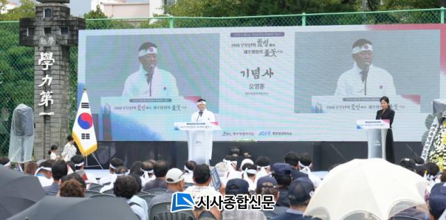 ¿À¿µÈÆ Á¦ÁÖµµÁö»ç´Â ±â³ä»ç¿¡¼ ¡°¼±¿µéÀÌ ¿¸ÁÇß´ø ¶æÀ» À̾î¹Þ¾Æ, µµ¹ÎµéÀ» À§ÇØ ´õ¿í ÆòÈ·Ó°í ¹ø¿µµÈ ¼¼»óÀ» Àϱ¸´Â °ÍÀÌ °¡Àå Å« °úÁ¦¡±¶ó¸ç ¡°¹«¿À¹ýÁ¤»ç Ç×ÀϿÀÇ ±â¾ïÀÌ ´õ¿í »ý»ýÇÏ°Ô ¿ì¸® ¸ðµÎÀÇ °¡½¿ ¼Ó¿¡, ±×¸®°í ´ÙÀ½ ¼¼´ë¿¡±îÁö À̾îÁú ¼ö ÀÖµµ·Ï ÃÖ¼±À» ´ÙÇϰڴ١±°í ´ÙÁüÇß´Ù.
