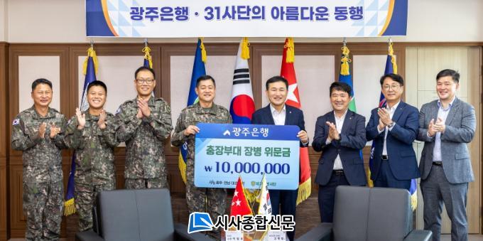 [½Ã»çÁ¾ÇսŹ® = ¿À½ÂÅà ±âÀÚ] ±¤ÁÖÀºÇà(ÀºÇàÀå °íº´ÀÏ)Àº 26ÀÏ, 77Áֳ⠱¹±ºÀÇ ³¯À» ¾ÕµÎ°í Áö¿ª¹æÀ§ Ã¥ÀÓ»ç´ÜÀÎ Á¦31º¸º´»ç´Ü(»ç´ÜÀå ÀÌÀÏ¿ë)À» ¹æ¹®ÇØ À§¹®±Ý 1õ¸¸¿øÀ» Àü´ÞÇϰí À庴µéÀ» °Ý·ÁÇß´Ù°í ¹àÇû´Ù.