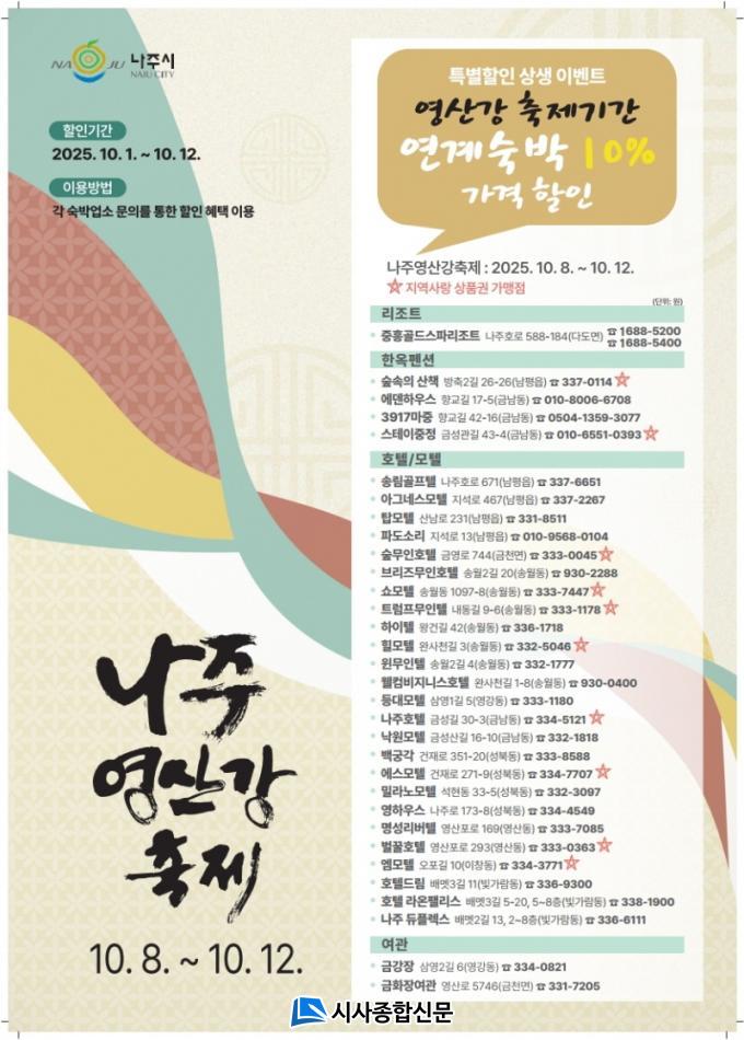 ³ªÁÖ½Ã(½ÃÀå À±º´ÅÂ)´Â ÃàÁ¦¸¦ ã´Â °ü±¤°´µé¿¡°Ô ½ÇÁúÀûÀÎ ¼÷¹Úºñ Àý°¨ ÇýÅÃÀ» Á¦°øÇϰí Áö¿ª ¼÷¹Ú¾÷°è¿¡´Â ¸ÅÃâ Áõ´ë¿Í »ó»ýÀÇ ±âȸ¸¦ ¼±»çÇϱâ À§ÇØ À̺¥Æ®¸¦ ±âȹÇß´Ù°í 29ÀÏ ¹àÇû´Ù. ÃàÁ¦ ±â°£ ³ªÁÖ °ü³» ¼÷¹Ú¾÷¼Ò¸¦ ÀÌ¿ëÇϸé Á¤»ó°¡ ´ëºñ 10% ÇÒÀÎ ÇýÅÃÀ» ¹ÞÀ» ¼ö ÀÖÀ¸¸ç ÁßÈï°ñµå½ºÆÄ¸®Á¶Æ®¸¦ ºñ·ÔÇÑ 31°³ ÇÑ¿Á Ææ¼Ç, È£ÅÚ, ¸ðÅÚ µîÀÌ Âü¿©ÇÑ´Ù.