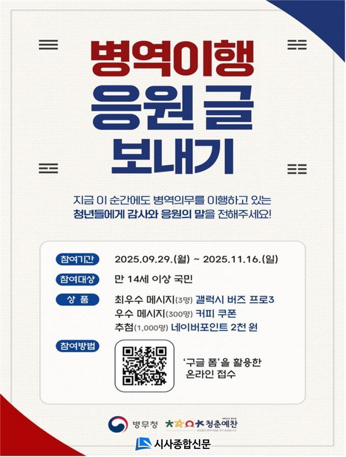 Âü¿© ´ë»óÀº ¸¸ 14¼¼ ÀÌ»óÀÇ ±¹¹ÎÀÌ¸é ´©±¸³ª °¡´ÉÇϸç, Âü¿© ¹æ¹ýÀº º´¿ªÀÌÇàÀ» ÀÌÇàÇϴ û³âµé¿¡°Ô °¨»ç¿Í ÀÀ¿øÀ» º¸³»´Â ±ÛÀ» ´ã¾Æ 50ÀÚ ÀÌ»ó 150ÀÚ À̳»·Î ÀÛ¼ºÇØ ¿Â¶óÀÎÀ¸·Î Á¦ÃâÇÏ¸é µÈ´Ù.