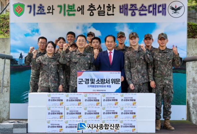 [½Ã»çÁ¾ÇսŹ® = ¿À½ÂÅà ±âÀÚ] Áøµµ±º ÅëÇÕ¹æÀ§ÇùÀÇȸ ÀÇÀåÀÎ ±èÈñ¼ö Áøµµ±º¼ö´Â ¹ÎÁ· ÃÖ´ëÀÇ ¸íÀýÀÎ Ãß¼®À» ¸Â¾Æ Áö³ 9¿ù 29ÀÏ¿¡ Áøµµ¼Ò¹æ¼, À°±ºÁ¦8539ºÎ´ë1ÇØ¾È°¨½Ã±âµ¿´ë´ë, ¸ñÆ÷ÇØ¾ç°æÂû¼ÁøµµÆÄÃâ¼Ò, Áøµµ±º¿¹ºñ±ºÁö¿ª´ë¸¦ ¹æ¹®ÇØ À§¹®Ç°À» Àü´ÞÇß´Ù.