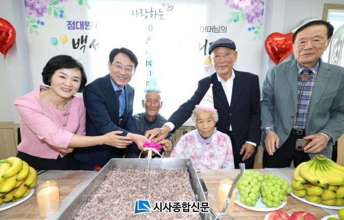 À̳¯ 100¼¼ ¾î¸£½Å²² µå¸®´Â û·ÁÀå°ú ÇÔ²² °úÀÏ¡¤ÂüÄ¡¼¼Æ® µî À§¹®Ç°À» Àü´ÞÇßÀ¸¸ç, ÄÉÀÌÅ© Ä¿ÆÃ°ú ±â³äÃÔ¿µÀ» ÅëÇØ Âü¼®ÀÚ ¸ðµÎ°¡ ¾î¸£½ÅµéÀÇ Àå¼ö¸¦ ÃàÇÏÇÏ´Â ½Ã°£À» °¡Á³´Ù.