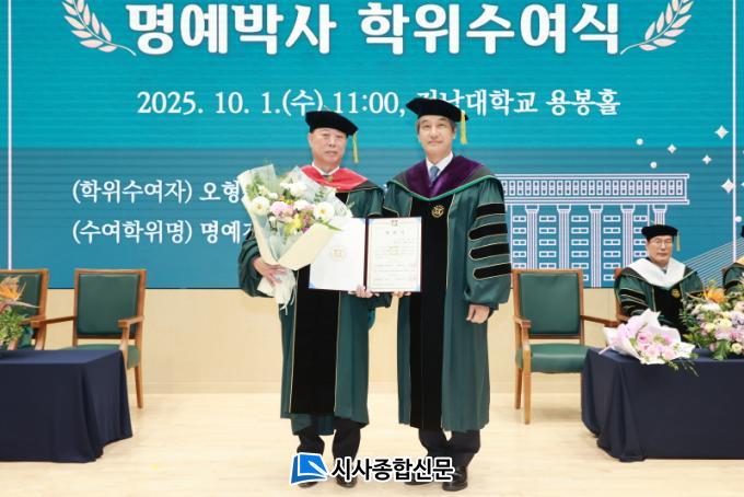 Àü³²´ë´Â 1ÀÏ ¿ÀÀü 11½Ã ´ëÇк»ºÎ 2Ãþ ¿ëºÀȦ¿¡¼ ¿ÀÇü¼® ȸÀå¿¡°Ô ¸í¿¹°æÁ¦ÇÐ ¹Ú»ç ÇÐÀ§¸¦ ¼ö¿©Çß´Ù°í ¹àÇû´Ù. À̳¯ ÇÐÀ§¼ö¿©½Ä¿¡´Â À̱ٹè Àü³²´ë ÃÑÀåÀ» ºñ·ÔÇØ ÁÖÁ¤¹Î ´ëÇпøÀå, ³ªÁÖ¸ù °æ¿µ´ëÇÐÀå µî ÁÖ¿ä º¸Á÷ÀÚ°¡ Âü¼®Çß´Ù.