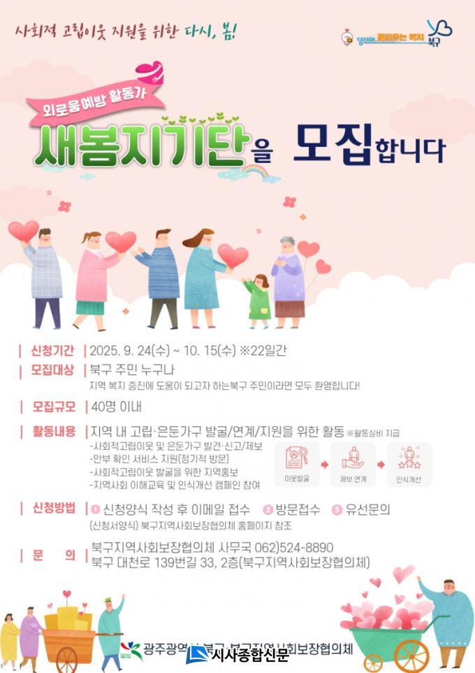 ¡®»õº½Áö±â´Ü¡¯Àº ºÏ±¸ ÁֹΠ´©±¸³ª Âü¿©ÇÒ ¼ö ÀÖÀ¸¸ç °ü½É ÀÖ´Â ÁÖ¹ÎÀº ºÏ±¸ Áö¿ª»çȸº¸ÀåÇùÀÇü ´©¸®ÁýÀ» Âü°íÇØ ½Åû¼¸¦ À̸ÞÀÏ ¶Ç´Â ¹æ¹® Á¢¼öÇÏ¸é µÈ´Ù.