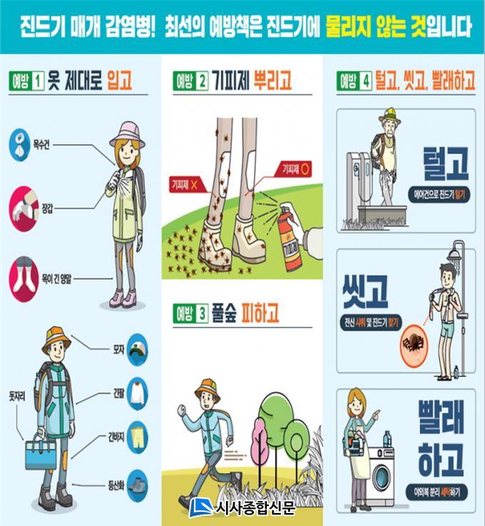 Áøµå±â ¸Å°³ °¨¿°º´ ¿¹¹æÀ» À§ÇÑ ¿¹¹æ¼öÄ¢À¸·Î´Â ¡ã¾ß¿ÜȰµ¿ ½Ã ±äÆÈ¡¤±ä¹ÙÁö ÀԱ⠡ãÀǺ¹°ú ÇǺο¡ Áøµå±â ±âÇÇÁ¦ »ç¿ë ¡ãÇ®½£¡¤Ç®¹ç ÇÇÇÏ±â ¹× ¾É°Å³ª ¿ÊÀ» ¹þ¾îµÎÁö ¾Ê±â ¡ã¾ß¿ÜȰµ¿ ÈÄ »þ¿ö ¹× ÀÔÀº ¿ÊÀº ÅÐ¾î ¼¼Å¹Çϱ⠡㹰¸° ÈçÀûÀ̳ª ÀǽÉÁõ»ó »ìÇDZ⠵îÀÌ ÀÖ´Ù.