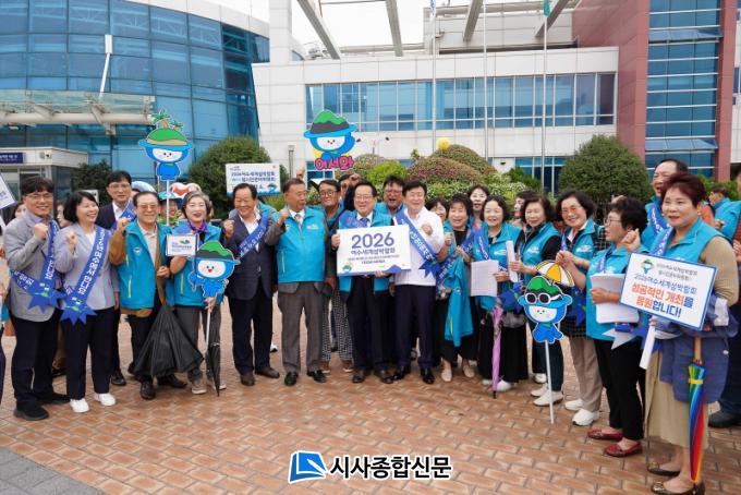 À̳¯ ½Ã´Â ¿Â±â³ª´® Ä·ÆäÀÎÀÇ Àǹ̸¦ ½Ã¹Îµé¿¡°Ô ¾Ë¸®´Â µ¿½Ã¿¡ ´Ù°¡¿À´Â 2026¿©¼ö¼¼°è¼¶¹Ú¶÷ȸ È«º¸ Ä·ÆäÀÎÀ» Àû±Ø Àü°³Çß´Ù. ÇöÀå¿¡¼´Â ¡®´Ù¼¶ÀÌ(¼¶¹Ú¶÷ȸ ¸¶½ºÄÚÆ®)¡¯ È«º¸¹°Ç°°ú ¸®Çø´À» ¹èºÎÇÏ¸ç ¹Ú¶÷ȸ °³ÃÖ ÃëÁö¸¦ ¼³¸íÇϰí, ±¹Á¦Çà»ç·Î¼ÀÇ ¿©¼öÀÇ ºñÀüÀ» ¾Ë¸®´Â µî ´Ù¾çÇÑ È«º¸È°µ¿À» ÆîÃÆ´Ù.