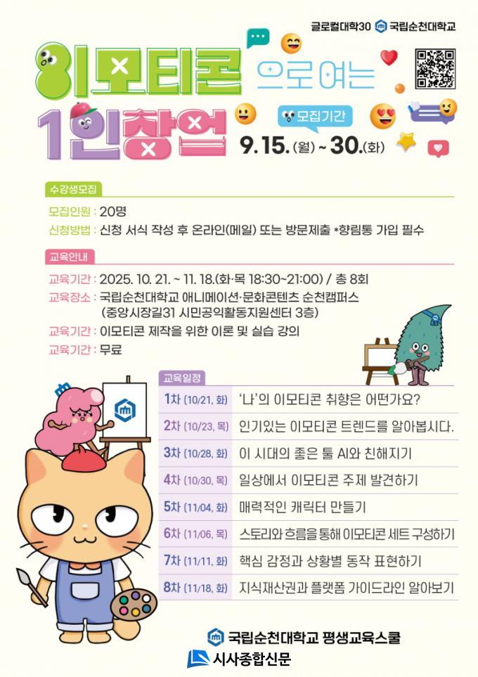 À̹ø ±³À°°úÁ¤Àº ±¹¸³¼øÃµ´ëÇб³ ¾Ö´Ï¸ÞÀ̼ǡ¤¹®ÈÄÜÅÙÃ÷½ºÄð Áö»êÇÐÄ·ÆÛ½º ³» Æò»ý±³À°½ºÄð Áö¿ª°ÅÁ¡¼¾Å͸¦ ±â¹ÝÀ¸·Î, Áö¿ª ±¸¼º¿øÀÇ ÄÜÅÙÃ÷ Á¦ÀÛ ¿ª·®À» ³ôÀ̰í, À̸¦ ¹ÙÅÁÀ¸·Î »õ·Î¿î Ãë¾÷ ¹× â¾÷ ±âȸ¸¦ âÃâÇÒ ¼ö ÀÖµµ·Ï Áö¿øÇÏ´Â µ¥ ¸ñÀûÀ» µÎ°í ÀÖ´Ù.