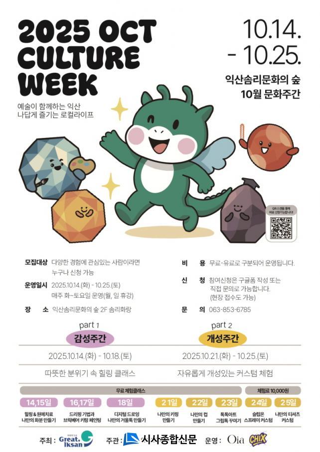 ƯÈ÷ À̹ø ¹®ÈüÇè ÁÖ°£¿¡´Â üÇè»Ó¸¸ ¾Æ´Ï¶ó ±×¶óÇÇÆ¼¡¤°ø¿¹ µî ´Ù¾çÇÑ ºÐ¾ßÀÇ Áö¿ª û³â ¿¹¼ú°¡µé°ú Çù¾÷ÇØ ´õ¿í ½Å¼±Çϰí Àü¹®ÀûÀÎ ¹®È ÇâÀ¯ÀÇ ±âȸ¸¦ Á¦°øÇÒ ¿¹Á¤ÀÌ´Ù. Âü¿© ½ÅûÀº ÀÍ»ê½Ã¹®Èµµ½ÃÁö¿ø¼¾ÅÍ ´©¸®Áý ¶Ç´Â ÀüÈ(063-853-6785)·Î ÇÒ ¼ö ÀÖ´Ù. ÀϺΠÇÁ·Î±×·¥Àº Àç·á ¼ÒÁø ½Ã Á¶±â ¸¶°¨µÉ ¼ö ÀÖÀ¸¸ç, üÇèÀº ¹«·á ¹× À¯·á(1ÀÎ 1¸¸ ¿ø)·Î ¿î¿µµÈ´Ù.