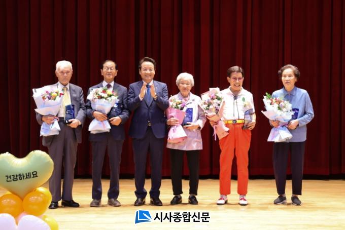 ¼ö»óÀÚ´Â ¹é¿µÃ¶(89) ¾¾, ½ÅÇö´ö(83) ¾¾, Àå±Ý¿Á(92) ¾¾, ¹Úº´º¹(82) ¾¾, Á¤¼øÁÖ(93) ¾¾´Ù. 93¼¼ÀÇ ÃÖ°í·É ¼ö»óÀÚÀÎ Á¤¼øÁÖ ¾î¸£½ÅÀº ¹®È¼¾ÅÍ ¼ö¿µ°ú Çコ ÇÁ·Î±×·¥¿¡ Àû±Ø Âü¿©ÇÏ¸ç °Ç°°ü¸®¸¦ À̾°í ÀÖ¾î ŸÀÇ ±Í°¨ÀÌ µÆ´Ù.