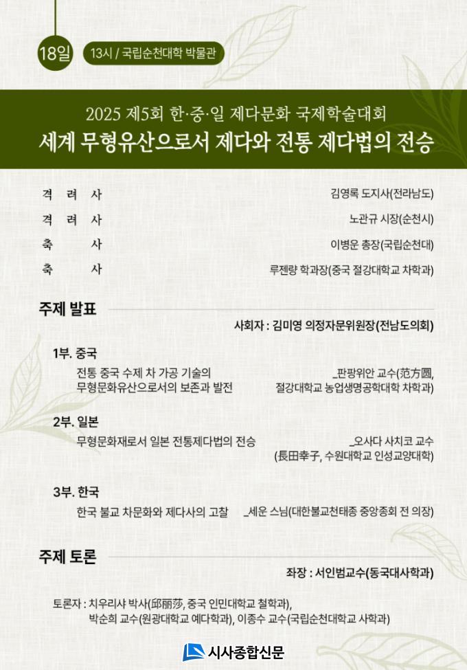 ÆÇÆÎÀ§¾È Àý°´ëÇб³ ±³¼ö°¡ ¡®ÀüÅë Áß±¹ ¼öÁ¦Â÷ °¡°ø±â¼úÀÇ º¸Á¸°ú ¹ßÀü¡¯À», ¿À»ç´Ù »çÄ¡ÄÚ ¼ö¿ø´ë ±³¼ö°¡ ¡®ÀϺ» ÀüÅë Á¦´Ù¹ýÀÇ Àü½Â¡¯À», ¼¼¿î ½º´Ô(´ëÇѺұ³ÃµÅÂÁ¾ Àü Áß¾ÓÁ¾È¸ ÀÇÀå)ÀÌ ¡®Çѱ¹ ºÒ±³ Â÷¹®È¿Í Á¦´Ù»çÀÇ °íÂû¡¯À» ¹ßÇ¥ÇÑ´Ù.