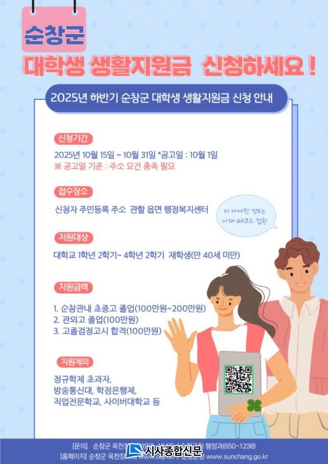 ¼øÃ¢±º ´ëÇлý »ýȰÁö¿ø±Ý Áö¿ø»ç¾÷Àº ¹Î¼±8±â ¼øÃ¢±º º¸ÆíÀû º¹ÁöÁ¤Ã¥ÀÇ Çٽɻç¾÷ÀÌ´Ù. ´ëÇÐ »ýȰºñ¿Í Áְźñ µî ±³À° °ü·Ã °æÁ¦Àû ºÎ´ãÀ» ´ú¾îÁÖ°í, Áö¿ª ÀÎÀçÀÇ °íµî±³À° ±âȸ¸¦ º¸ÀåÇØ ¿ì¼ö ÀÎÀ縦 ¾ç¼ºÇϱâ À§ÇØ ¸¶·ÃµÆ´Ù.