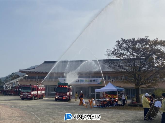 ³²±¸¿Í °ü°è±â°ü Âü¼®ÀÚ 300¿©¸íÀº ÃâÀÔ±¸ ºØ±«¿Í ÁöÁø ¿©ÆÄ·Î °Ç¹° 1Ãþ ±â°è½Ç¿¡¼ ÈÀç°¡ ¹ß»ýÇØ 2Ãþ °Ç¹° Àüü·Î ºÒ±æÀÌ È®»êÇÏ´Â »óȲ¿¡¼ Å»Ãⱸ È®º¸¿Í ÈÀç Áø¾Ð µî Ãʱ⠴ëÀÀ¿¡ ³ª¼´Â °úÁ¤À» ÈÆ·ÃÇÑ´Ù.