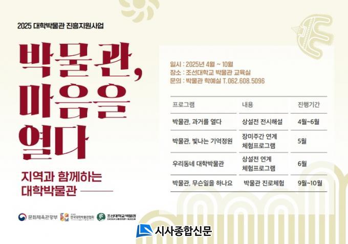 Á¶¼±´ëÇб³ ¹Ú¹°°üÀº (»ç)Çѱ¹´ëÇйڹ°°üÇùȸ°¡ ÁÖ°üÇÏ´Â ¡®2025 ´ëÇйڹ°°ü ÁøÈïÁö¿ø»ç¾÷¡¯ÀÇ ÀÏȯÀ¸·Î ¡®¡¸¹Ú¹°°ü, ¸¶À½À» ¿´Ù¡¹-Áö¿ª°ú ÇÔ²²ÇÏ´Â ´ëÇйڹ°°ü-¡¯ ÇÁ·Î±×·¥À» ¼ºÈ²¸®¿¡ ¸¶¹«¸®Çß´Ù.