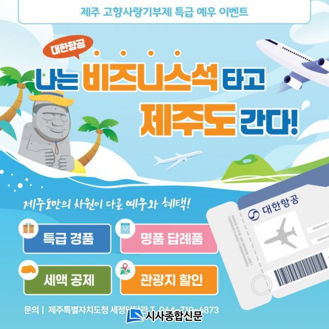 Á¦ÁÖµµ´Â Çà»ç±â°£ ³» ÃÖ´ë 320¸íÀÇ ±âºÎÀÚ¿¡°Ô ´Ù¾çÇÑ °æÇ°À» Áö±ÞÇÒ ¿¹Á¤ÀÌ´Ù. 50ÀÇ ¹è¼ö(50, 100, ¡¦ 1,000) ¼ø¹ø¿¡ ÇØ´çÇÏ´Â ±âºÎÀÚ 20¸í¿¡°Ô´Â Á¦ÁÖ-±èÆ÷ ¿Õº¹ ºñÁî´Ï½º¼® Ç×°ø±Ç 1¸Å°¡ ÁÖ¾îÁö¸ç, ³¡ÀÚ¸® 3, 6, 9ÀÎ ¼ø¹øÀÇ ±âºÎÀÚ 300¸í¿¡°Ô´Â ³×À̹öÆäÀÌ 1¸¸¿ø±ÇÀÌ Áö±ÞµÈ´Ù.