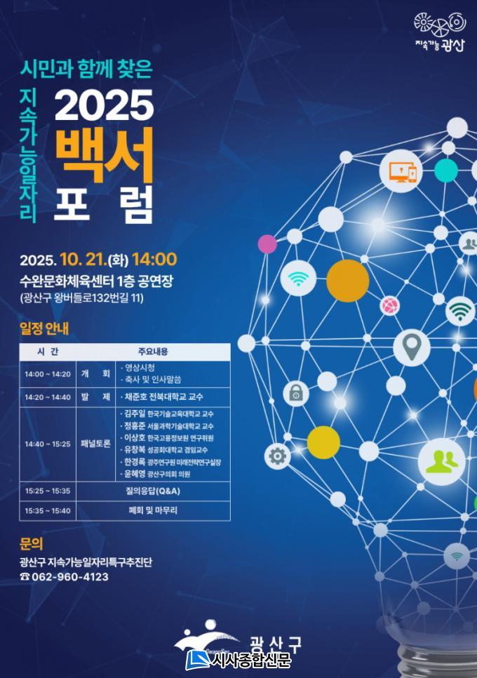 ±¤ÁÖ ±¤»ê±¸(±¸Ã»Àå ¹Úº´±Ô)´Â 21ÀÏ ¿ÀÈÄ 2½ÃºÎÅÍ ¼ö¿Ï¹®ÈüÀ°¼¾ÅÍ¿¡¼ '½Ã¹Î°ú ÇÔ²² ãÀº Áö¼Ó°¡´É ÀÏÀÚ¸®'¸¦ ÁÖÁ¦·Î 2025 Áö¼Ó°¡´É ÀÏÀÚ¸® ¹é¼ Æ÷·³(°ø°³Åä·Ðȸ)À» °³ÃÖÇÑ´Ù°í ¹àÇû´Ù.
