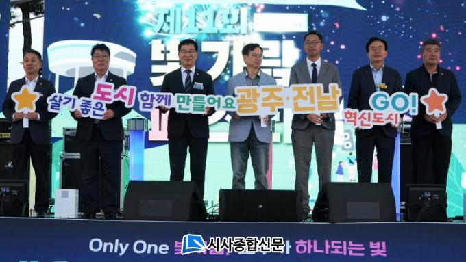 ±¤ÁÖ±¤¿ª½Ã(½ÃÀå °±âÁ¤)¿Í Àü¶ó³²µµ, ³ªÁÖ½Ã, ±¤ÁÖ¡¤Àü³²°øµ¿Çõ½Åµµ½Ã ÀÌÀü °ø°ø±â°üÀÌ °øµ¿ ÁÖÃÖÇÑ ¡®Á¦11ȸ ºû°¡¶÷ Æä½ºÆ¼¹ú¡¯Àº 18~19ÀÏ ÀÌÆ²°£ 3¸¸¿©¸íÀÇ ½Ã¹Î°ú °ø°ø±â°ü ÀÓÁ÷¿ø ¹× °¡Á·, °ü±¤°´ÀÌ Âü¿©ÇØ È£¼ö°ø¿øÀ» °¡µæ ¸Þ¿ì¸ç ¾î¿ì·¯Á® »ó»ý°ú ÈÇÕÀÇ ÀåÀÌ µÆ´Ù.