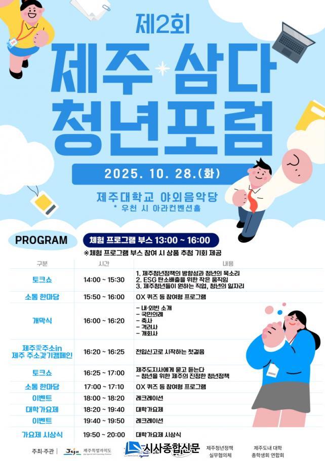[½Ã»çÁ¾ÇսŹ® = °í¼º¹Î ±âÀÚ] Á¦ÁÖÆ¯º°ÀÚÄ¡µµ¿Í Á¦ÁÖû³â¼¾ÅÍ(¼¾ÅÍÀå À̼ºÀç)´Â Á¦ÁÖ´ëÇб³ÃÑÇлýȸ ¹× Á¦ÁÖû³âÁ¤Ã¥ ½Ç¹«ÇùÀÇü¿Í ÇÔ²² ¿À´Â 10¿ù 28ÀÏ(È) Á¦ÁÖ´ëÇб³ ¾ß¿ÜÀ½¾Ç´ç¿¡¼ Á¦ÁÖ Ã»³âÆä½ºÆ¼¹ú¡¸Á¦2ȸ Á¦ÁÖ »ï´Ù û³âÆ÷·³¡¹À» °³ÃÖÇÑ´Ù°í ¹àÇû´Ù.