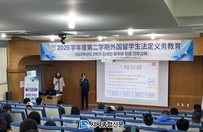 [½Ã»çÁ¾ÇսŹ® = ¿À½ÂÅà ±âÀÚ] ¿µ¾Ï°æÂû¼(¼Àå ¾çÁ¤È¯)´Â 21ÀÏ ¼¼ÇÑ´ëÇб³¿¡¼ Áß±¹ÀÎ À¯Çлý 150¿©¸í ´ë»ó, ¡®¿Ü±¹ÀÎÀÌ ²À ¾Ë¾Æ¾ß ÇÒ ¹üÁË À¯Çü¡¯À» ÁÖÁ¦·Î ÇÑ ¹üÁË¿¹¹æ ±³À°À» ½Ç½ÃÇß´Ù.