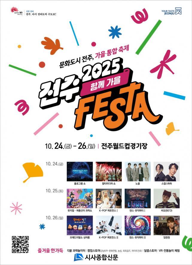 ÀüÁֽô ¿À´Â 24ÀϺÎÅÍ 26ÀϱîÁö ÀüÁÖ¿ùµåÄŰæ±âÀå¿¡¼ ¡®2025 ÀüÁÖºñºö¹äÃàÁ¦¡¯¿Í ÃàÇÏÇà»ç ¡®ÇÔ²²°¡À»¡¯À» ÇÔ²² °³ÃÖÇÑ´Ù. ƯÈ÷ °¡À»ÀÌ À;´Â ÀýÁ¤ÀÇ ¼ø°£ ÆîÃÄÁö´Â ÃàÇÏÇà»ç ¡®ÇÔ²²°¡À»¡¯Àº ù³¯ ¿ÀÈÄ 7½Ã, Ȧ·Î±×·¥¼î¿Í ¸ÖƼ¹Ìµð¾î&ºÒ²É³îÀ̼î, ÀαⰡ¼ö °ø¿¬, ÀüÁÖ Çϰè¿Ã¸²ÇÈ À¯Ä¡¸¦ ¿°¿øÇÏ´Â ¼¼¸®¸Ó´Ï µîÀ¸·Î Æ÷¹®À» ¿¬´Ù.