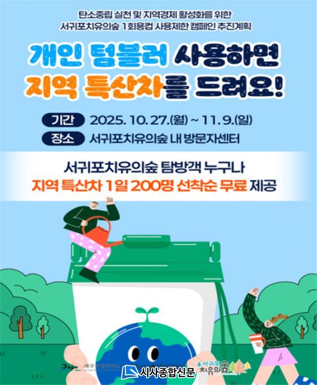 À̹ø Ä·ÆäÀÎÀº Á¦ÁÖµµÀÇ ¡®2050 ź¼ÒÁ߸³ ´Þ¼º¡¯ ºñÀü°ú ±ä¹ÐÈ÷ ¿¬°èÇÏ¿©, Ž¹æ°´µéÀÌ °³ÀÎ ÅÒºí·¯¸¦ ÁöÂüÇϸé Áö¿ª Ư»êÂ÷¸¦ ¹«·á·Î Á¦°øÇÏ´Â À̺¥Æ®·Î, Áö¹æÀÚÄ¡´Üü¿Í Áö¿ª»çȸ°¡ Çù·ÂÇÏ¿© 1ȸ¿ëǰ »ç¿ëÁÙÀ̱⸦ ÅëÇÑ »ýȰ ¼Ó ģȯ°æ ½Çõ ¹®È¸¦ È®»êÇÏ´Â µ¥ ±× ¸ñÀûÀÌ ÀÖ´Ù.